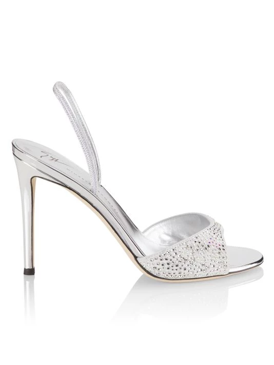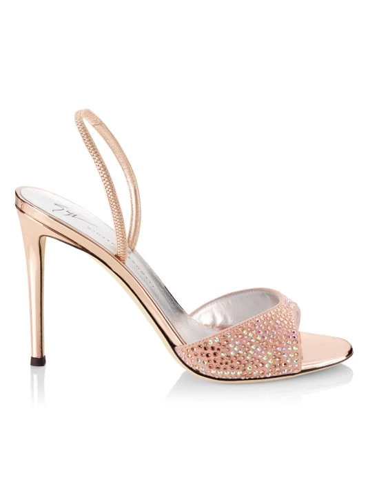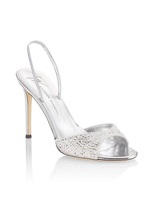 Metallic leather slingback sandals with a crystal-embellished toe strap.