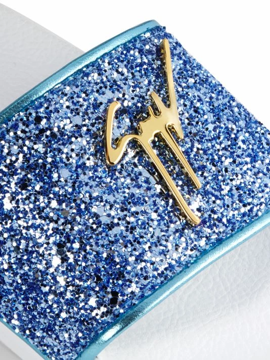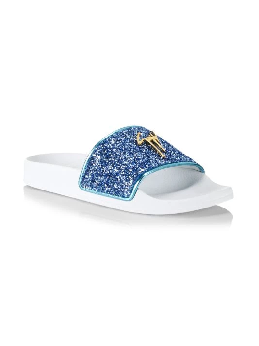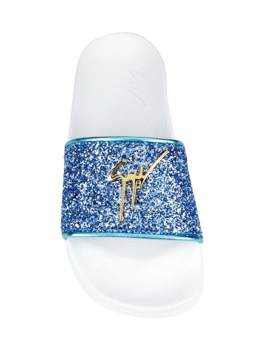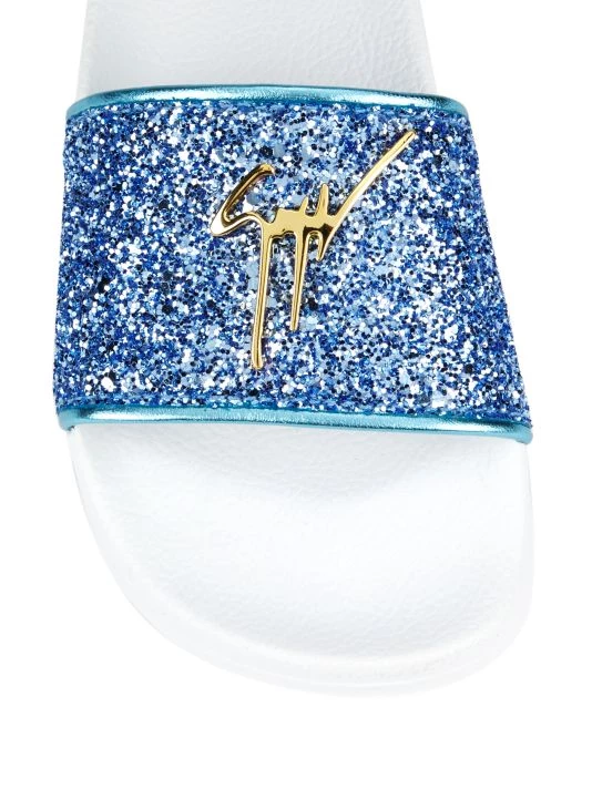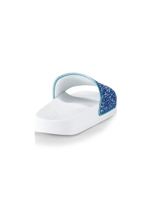 A glittery strap lends a whimsical feel to these rubber pool slides.