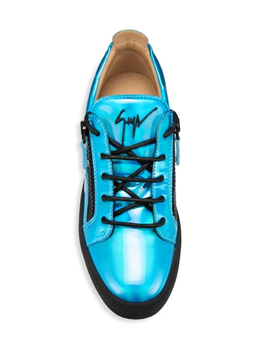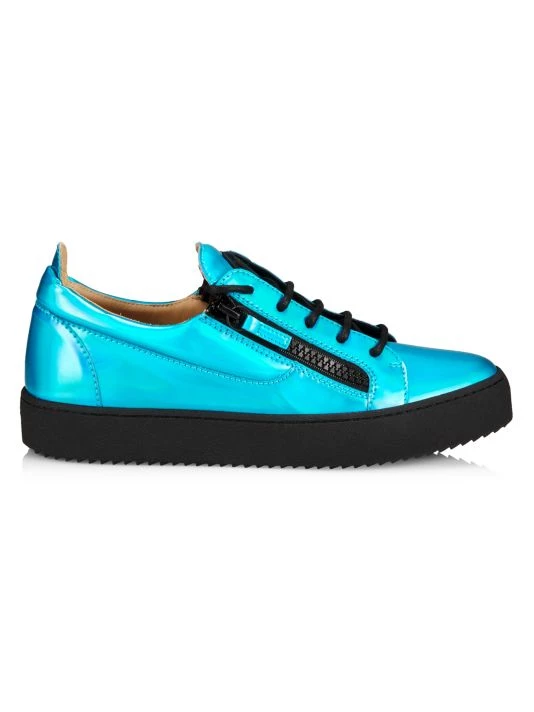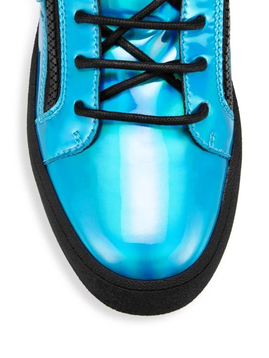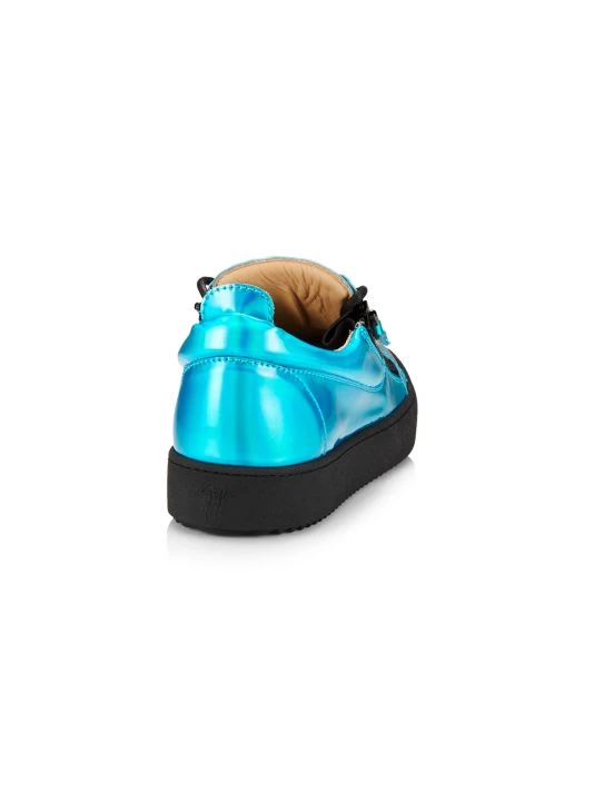 The logo detail on the tongue and side zipper details enhance these iridescent sneakers.