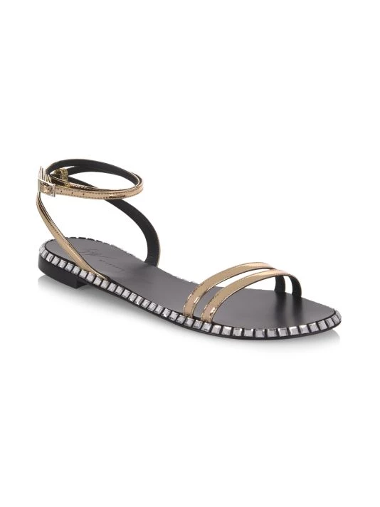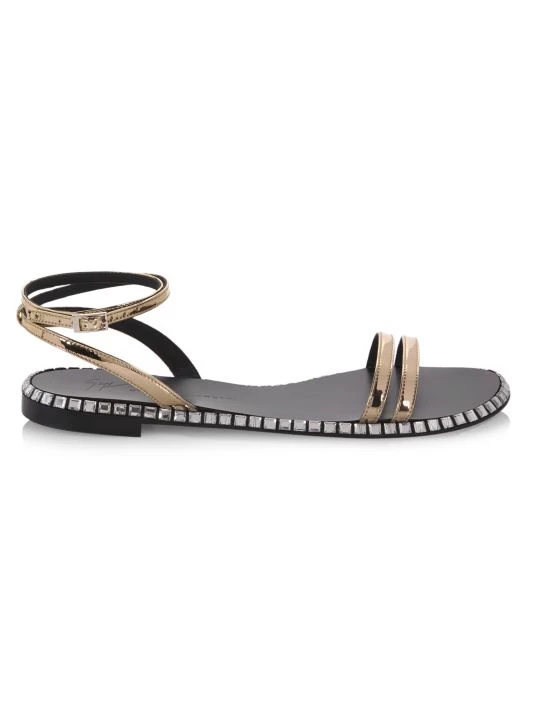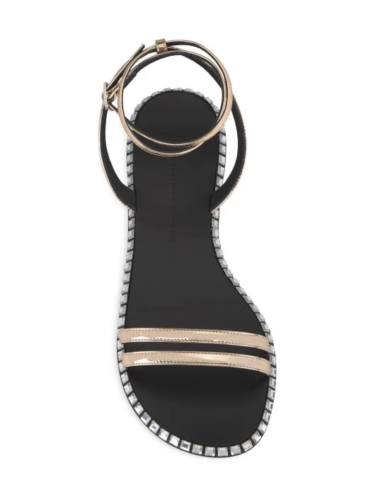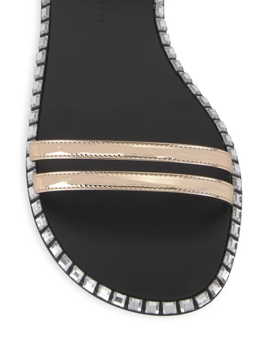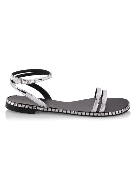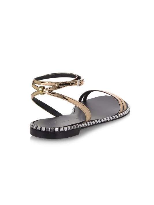 Crafted of metallic leather, these slingback sandals are highlighted with crystal embellished sole for a glamorous touch.