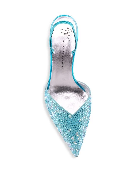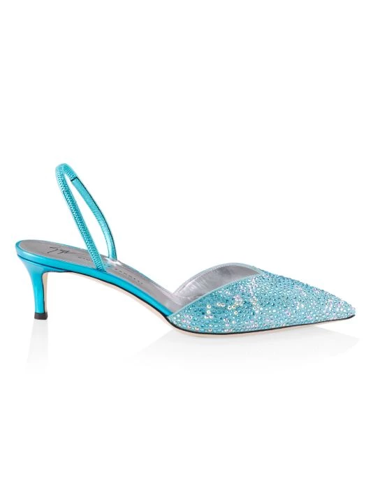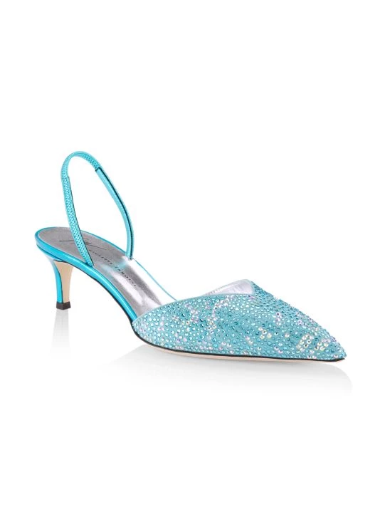 Anchored by a chic kitten heel, these slingback pumps are decorated with scattered crystals.