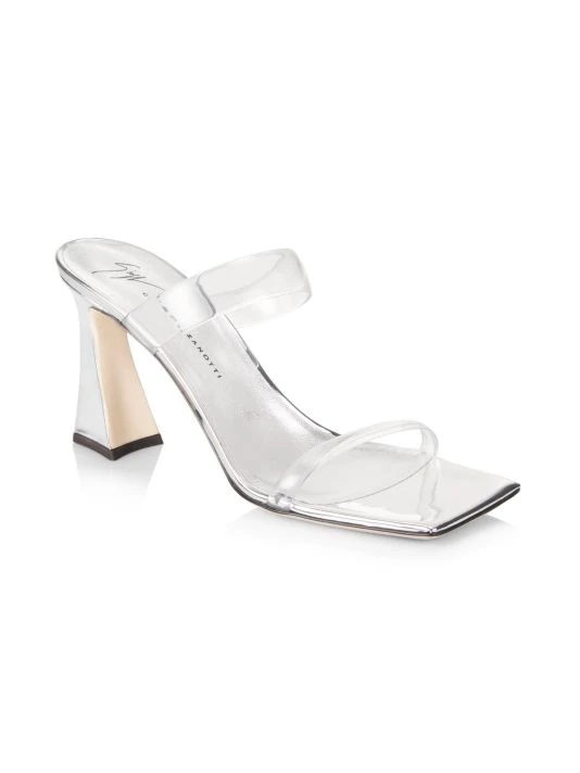Featuring a square toe and sculptural heel, these sandals are elevated by transparent PVC straps.