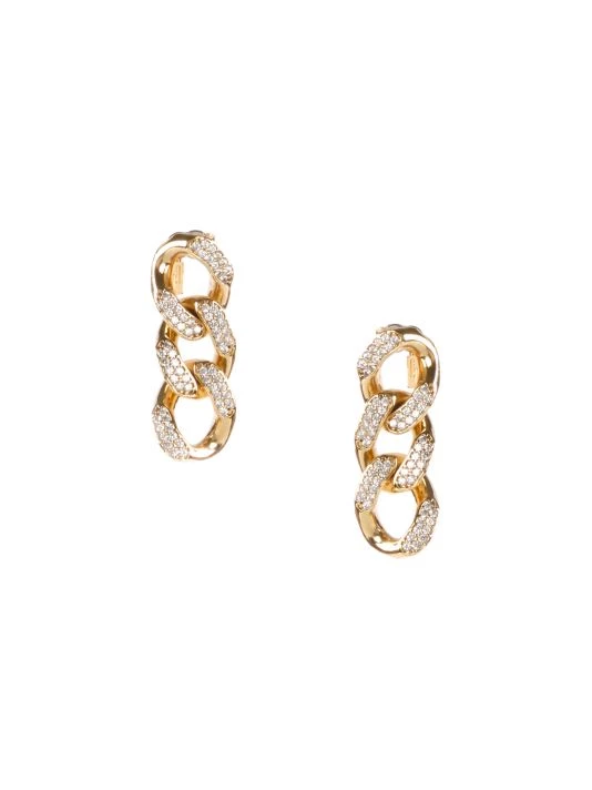 Faux crystal pavé lends glittering shine to these goldtone cuban link drop earrings.