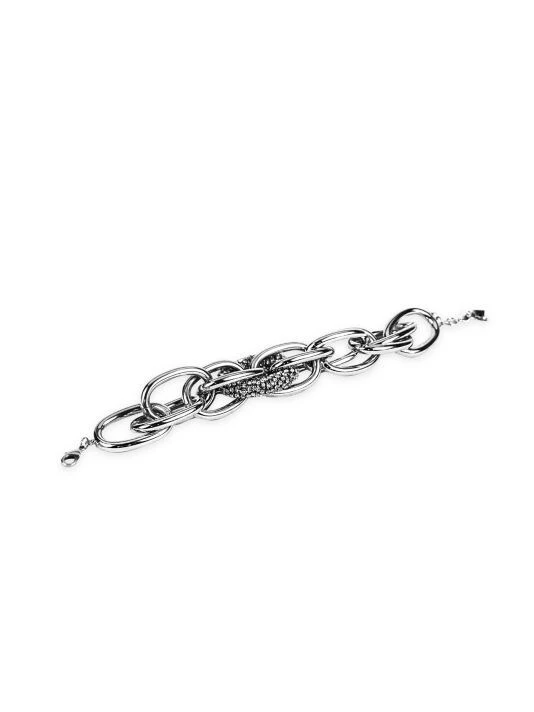 This bracelet features irregular gunmetal chain links with a dazzling crystal-embellished center.
