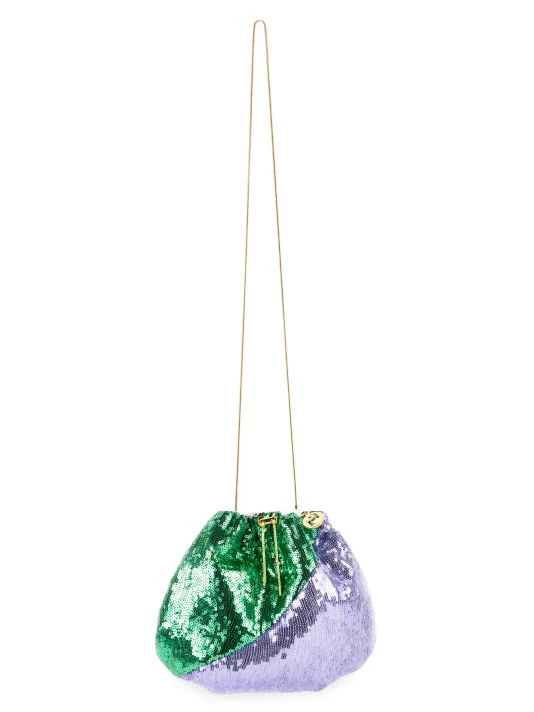The Fatale Paillettes bag by Rosantica is designed in a colorblocked construction adorned with sparkling sequins. Handmade in Milan, Italy, this glamorous piece is accompanied by a dainty crossbody chain strap.