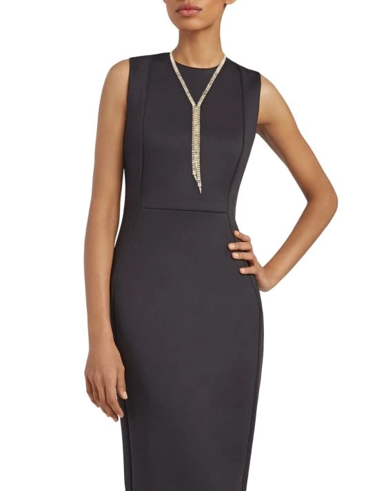 This stunning necklace is crafted of goldtone brass and features a fringe-effect lariat silhouette with dazzling synthetic crystal embellishments.
