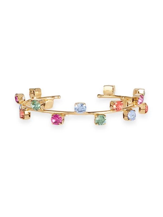 Rainbow faux crystals lend playful shine to this goldtone cuff bracelet.