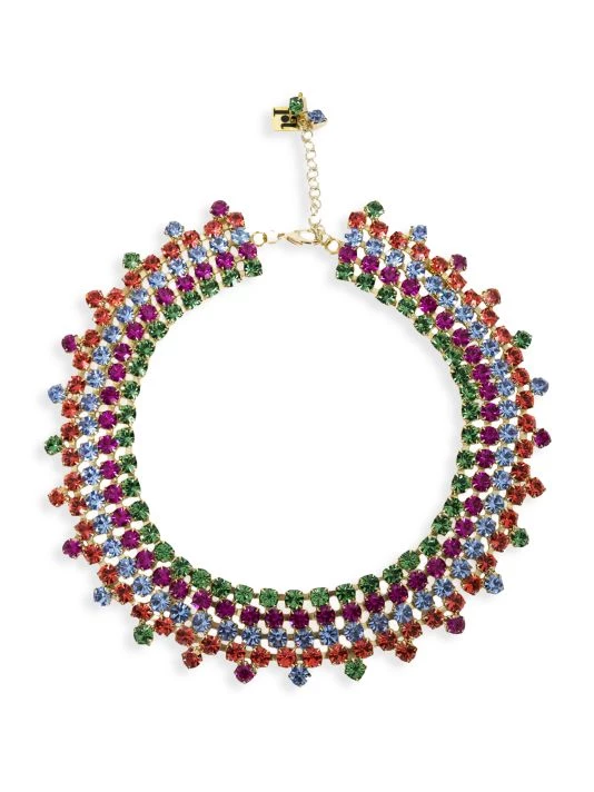Four rows of vibrant faux crystals lend exceptional shine to this statement collar necklace.