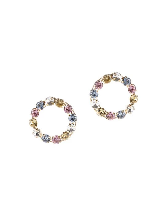Bright oversized crystals embellish these stud earrings, designed with a bold open shape.