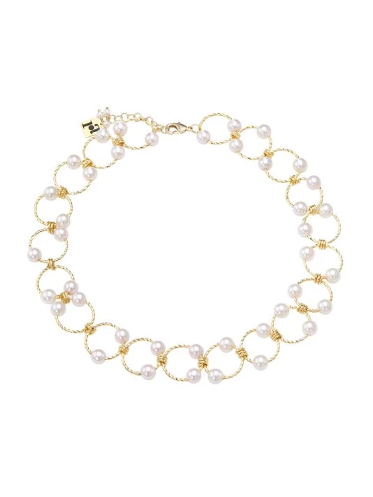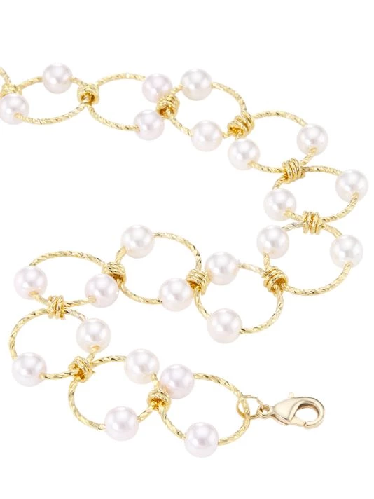 Rosantica’s goldtone necklace features chain links adorned with lustrous faux pearls.