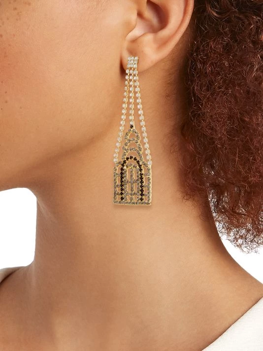 These stunning statement earrings feature glistening faux crystals set on goldtone brass.